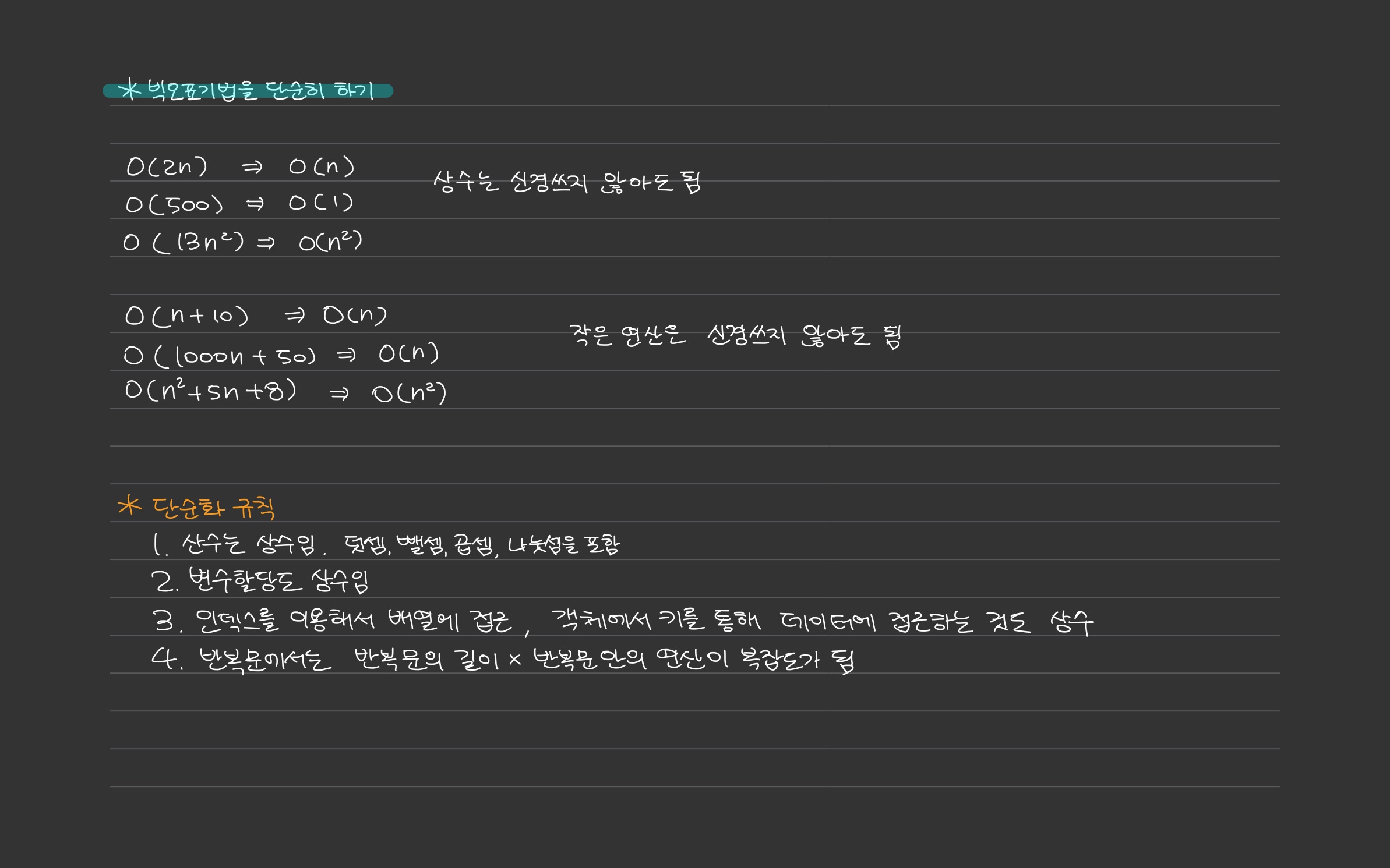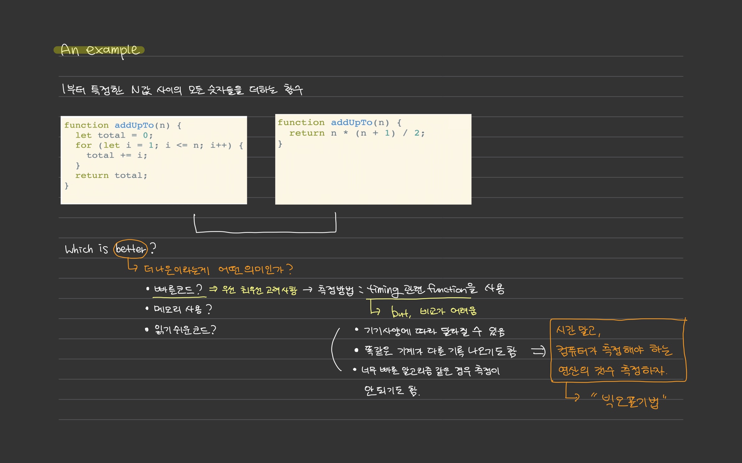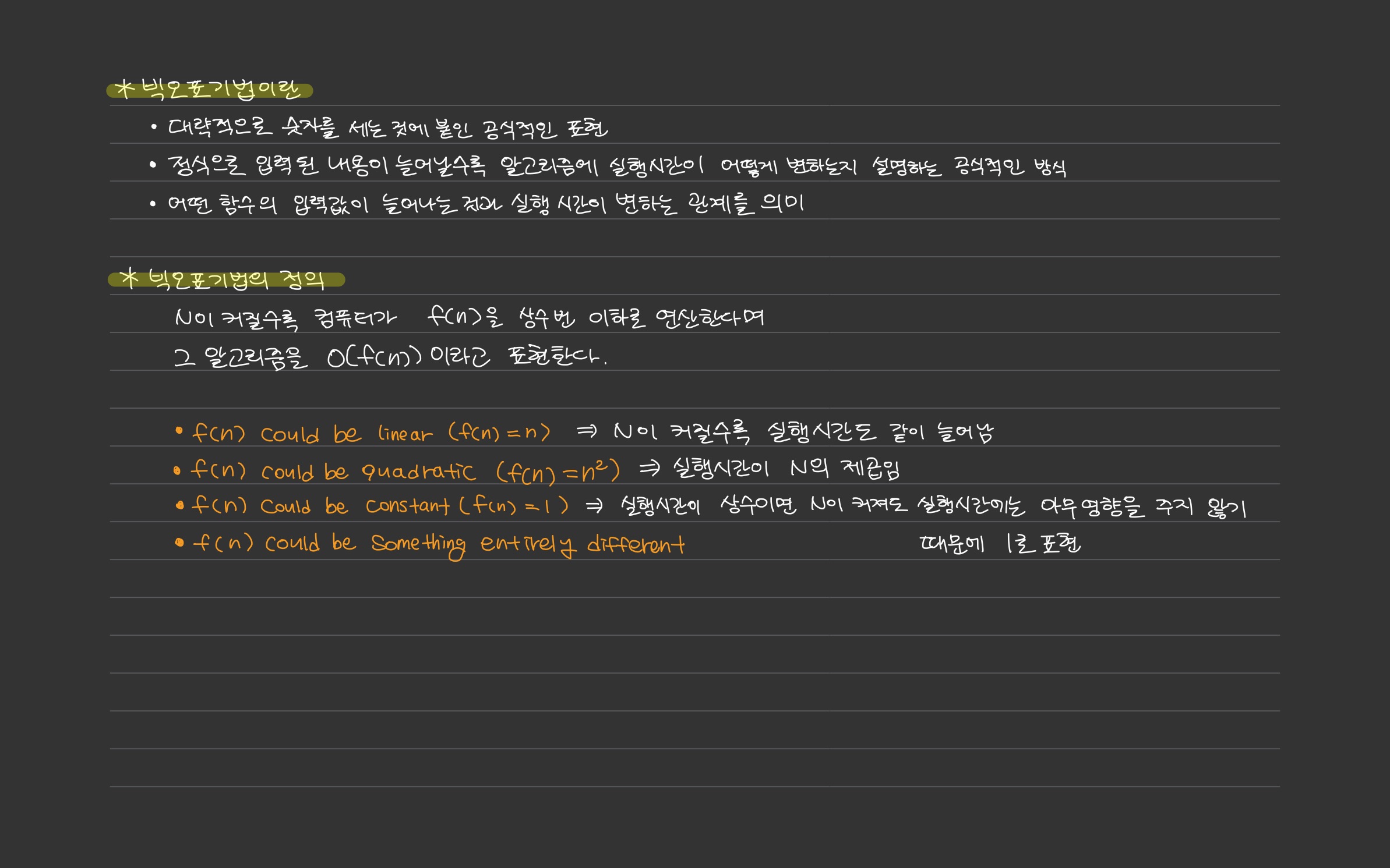 - 빅오 표기법을 사용한 여러가지 알고리즘의 평가