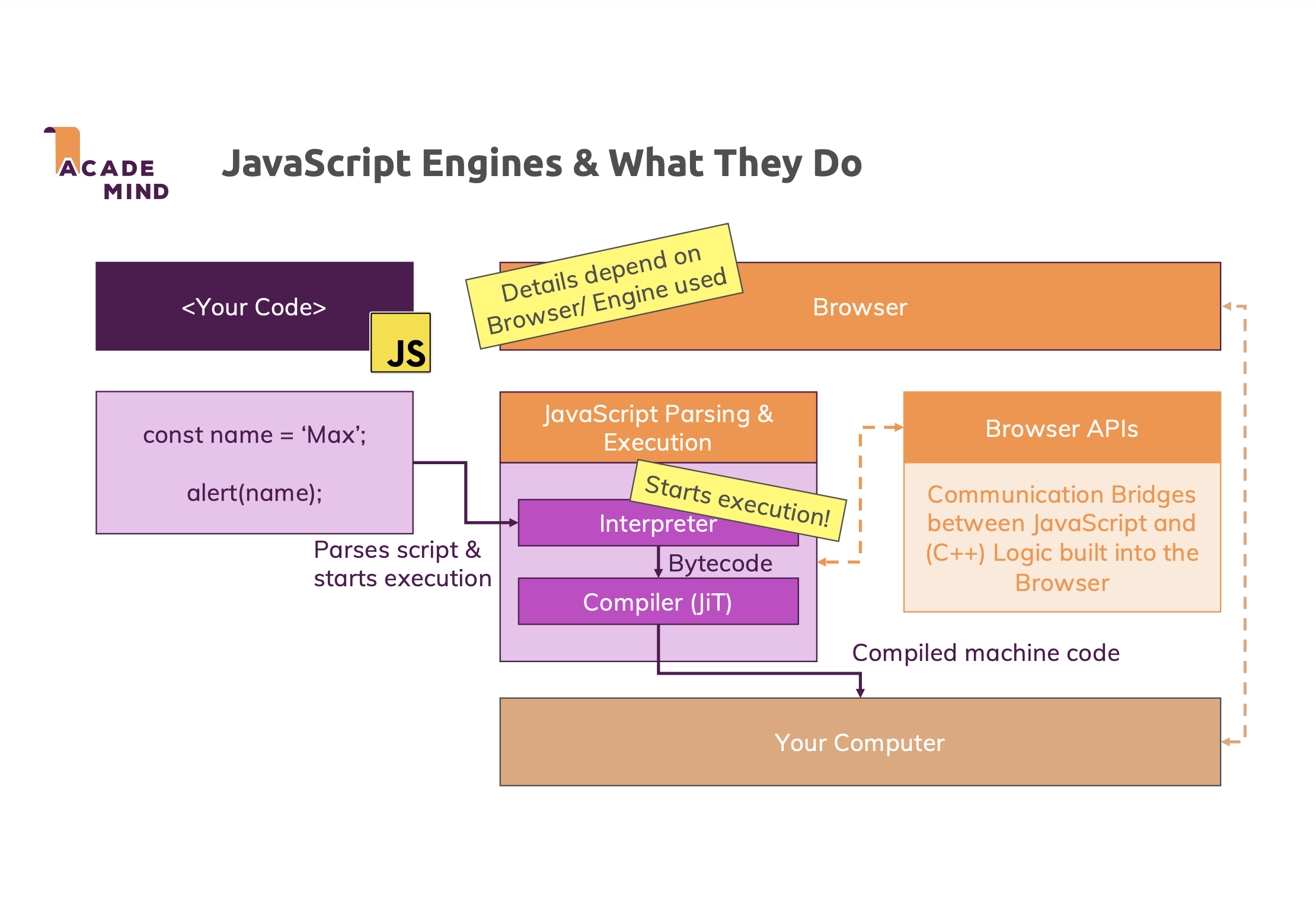 - 최상의 성능을 위해서는 단순히 코드를 실행하는 것이 아니라 머신에 코드를 컴파일한 다음 운영체제에 전달해야 함.